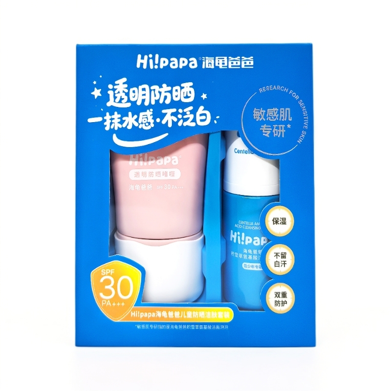 源码防伪Hi!papa海龟爸爸儿童防晒洁肤套装(透明防晒啫喱50g+积雪草氨基酸洁面泡泡30ml)